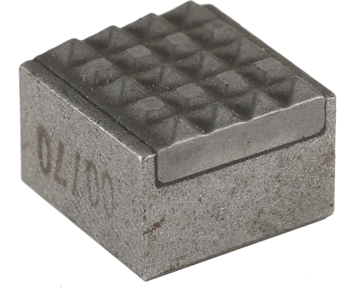 Entscheidend für die Sicherheit und Zuverlässigkeit einer Werkstückspannung ist die Wirkstelle zwischen Werkstück und Spannvorrichtung. grip- und plat-Einsätze schaffen hier besondere Vorsteile. Mit ihrer gezahnten oder glatten Hartmetalloberfläche bieten grip- und plat-Einsätze die ideale Anpassung der Spannmittel an die verschienden Einsatzfälle.